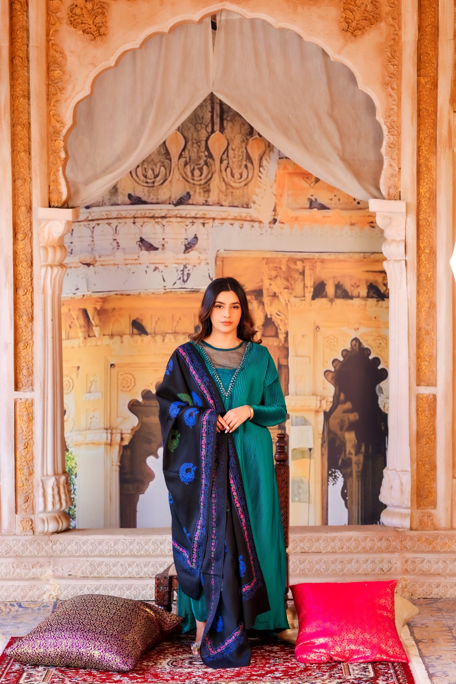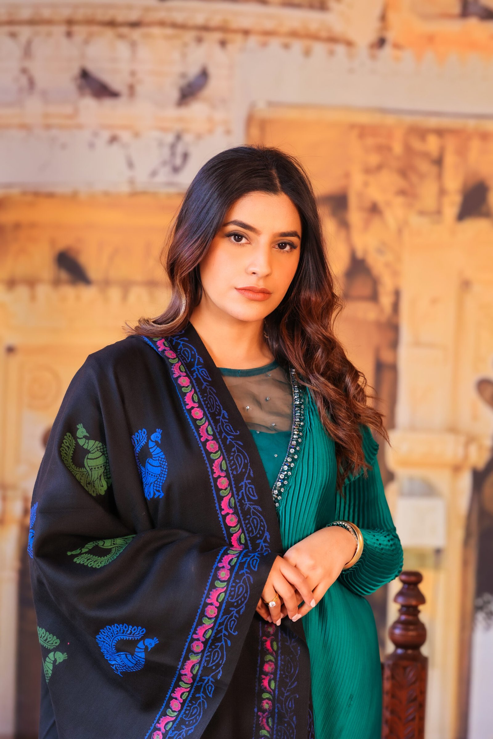 A statement stole that blends cultural symbolism with modern elegance.
